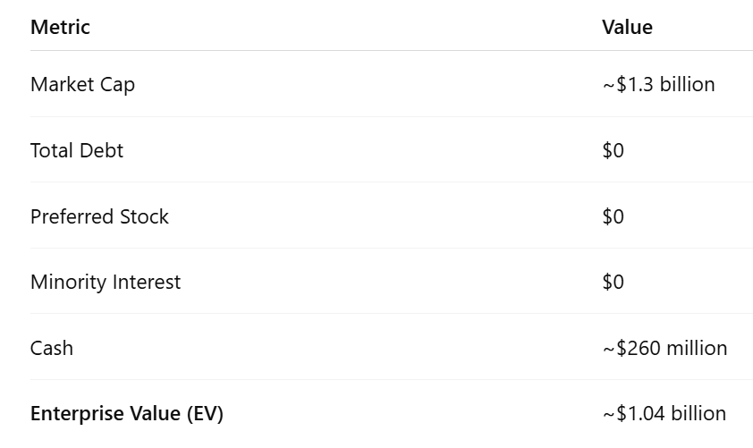 Semrush currently trades at approximately 3x revenue and holds around $260 million in cash, a substantial portion of its $1.3 billion market capitalization. This valuation stands out compared to other software peers, which often trade at 4–6x revenue, and in some cases 10–20x for companies with exceptional growth.